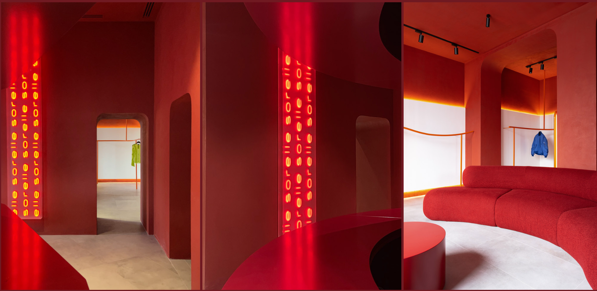 Интерьер магазина на Малой Никитской выполнен в красных тонах; необычная для российского модного ритейла цветовая гамма и плавные линии мебели служат идеальным фоном для одежды бренда. Но причины открытия — далеко не только имиджевые.